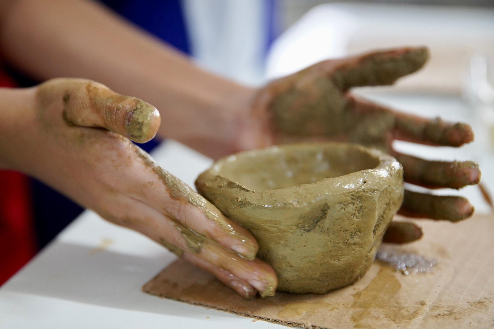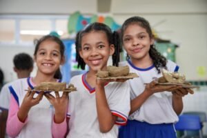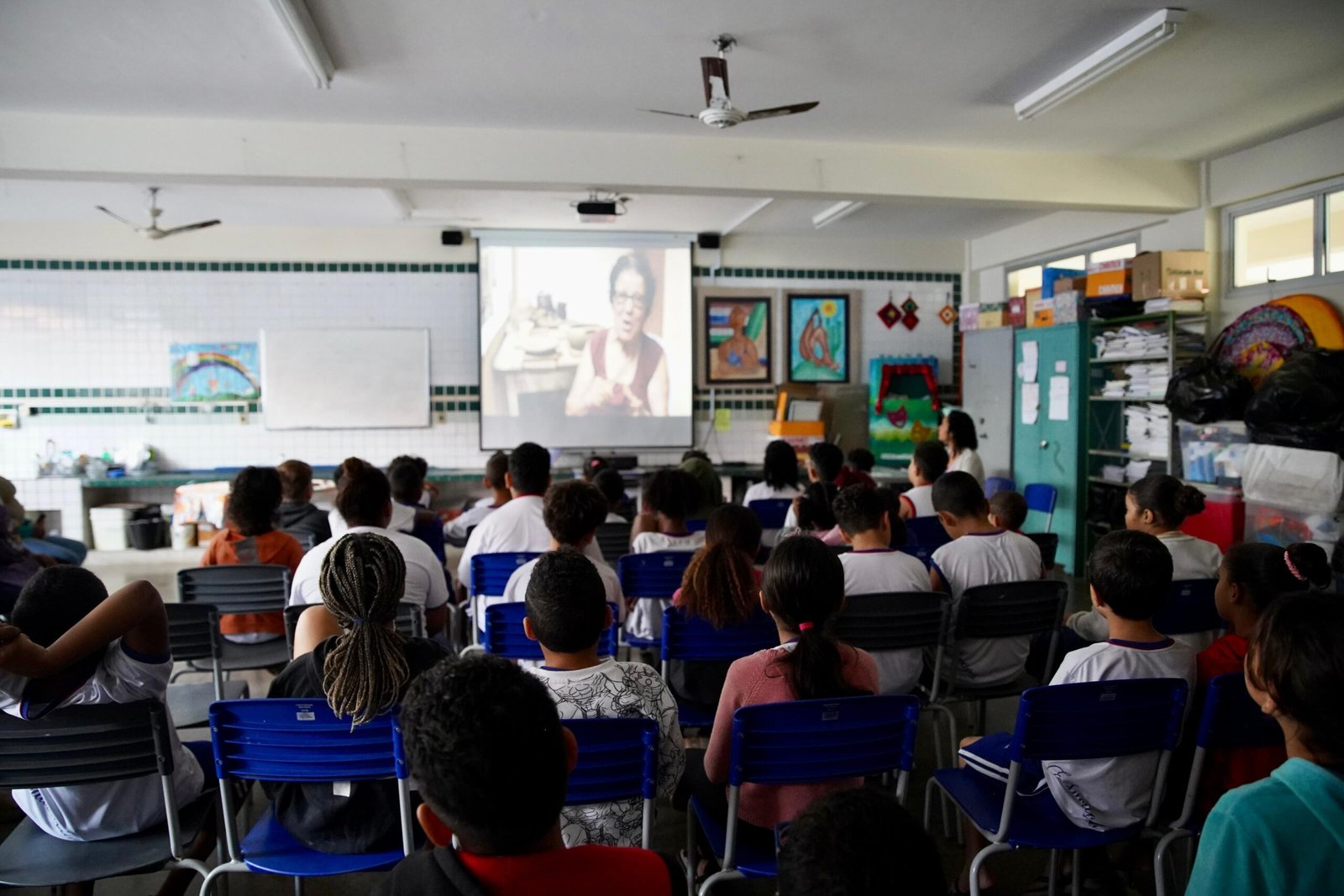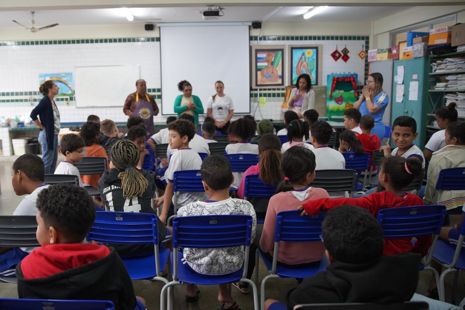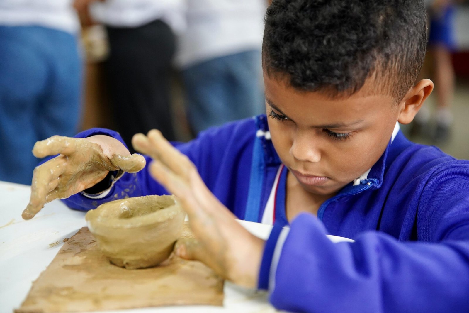 Como a EMEF Juscelino K. de Oliveira fica no bairro de Goiabeiras, muitas crianças já conheciam o galpão ou o ofício das paneleiras da região. Então foi, praticamente, uma oficina “avançada”, com dúvidas e comentários, digamos assim, mais aprofundados no tema. O que não diminuiu a empolgação, de forma alguma, com o contato direto com o barro.