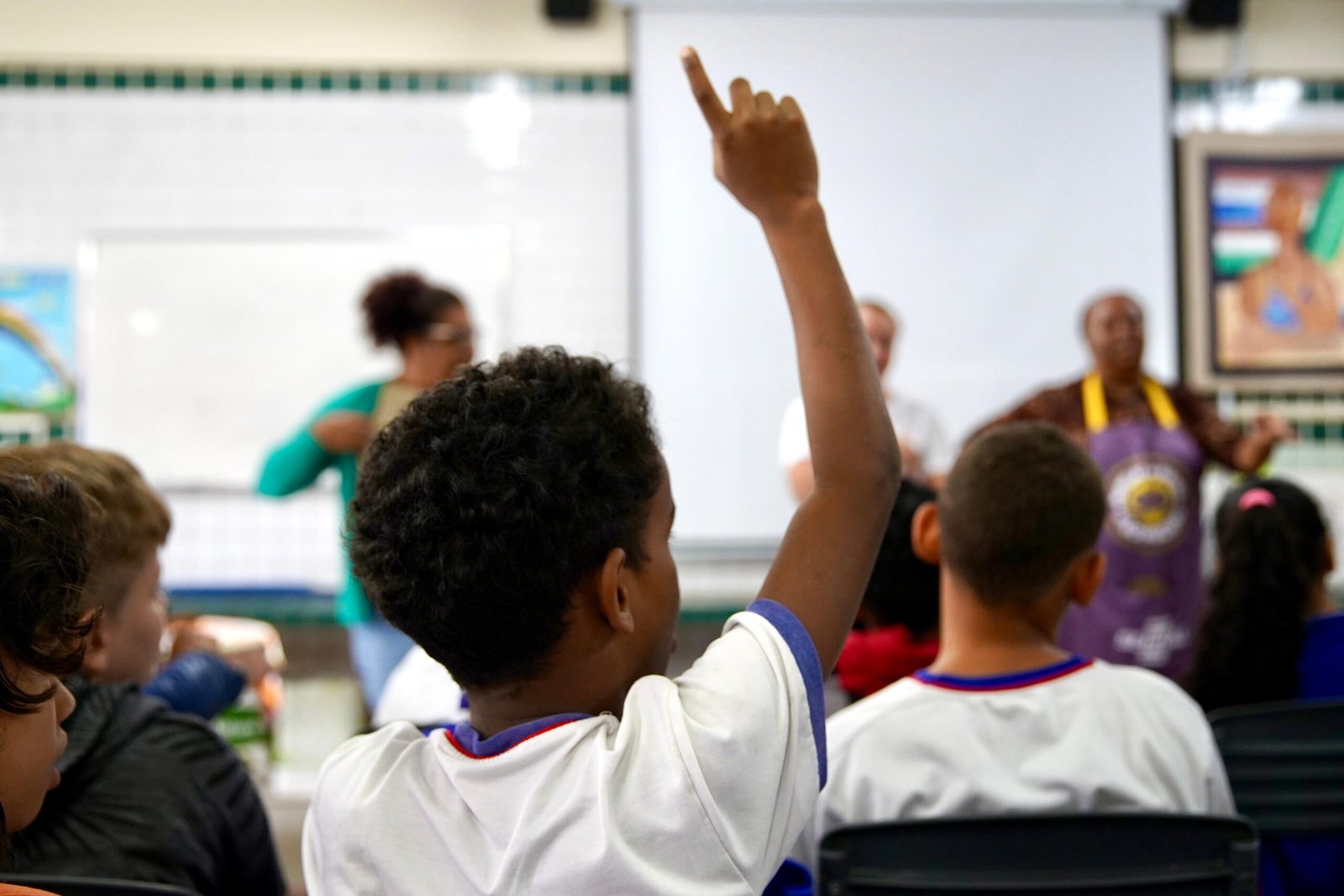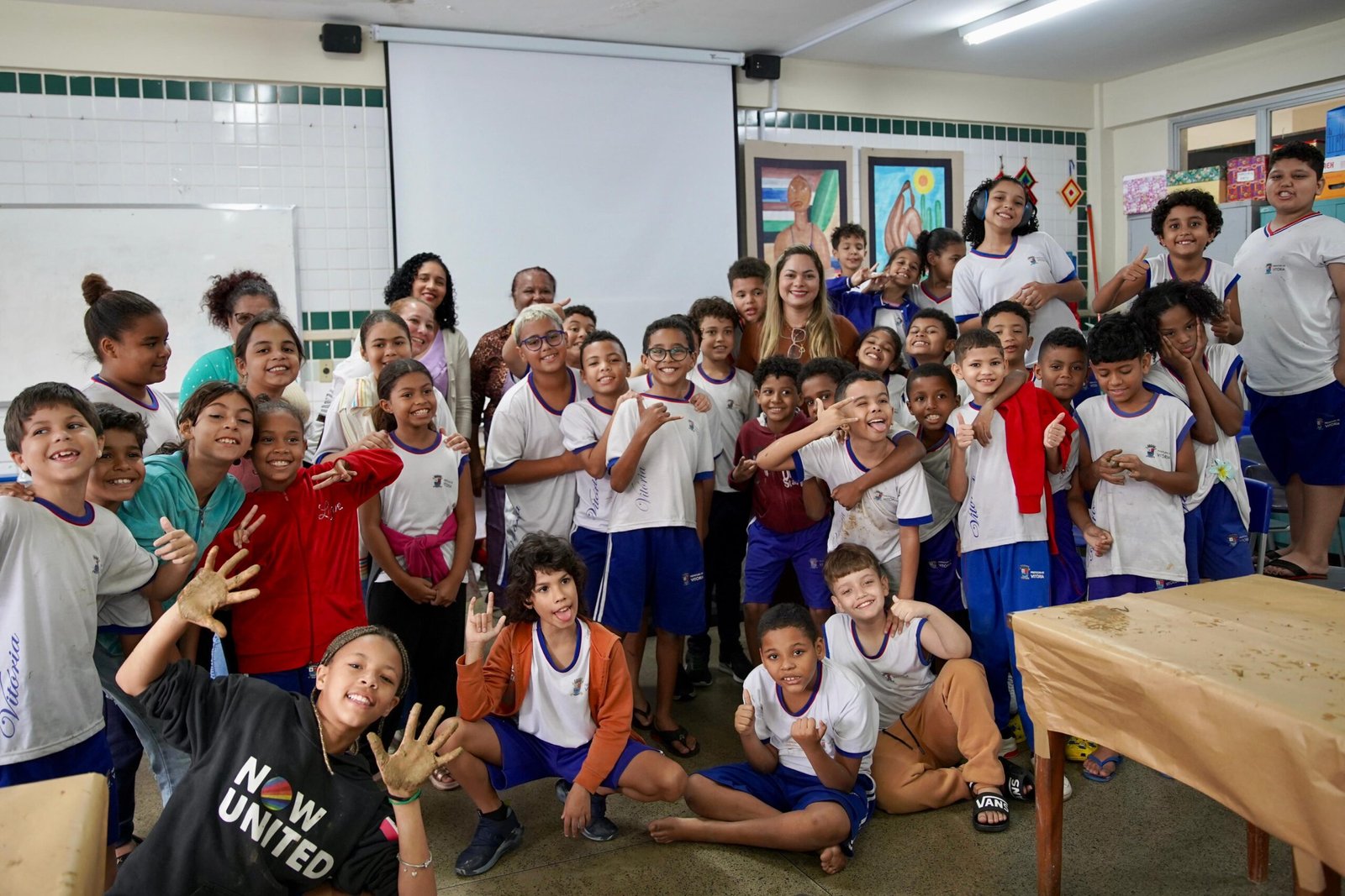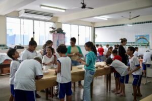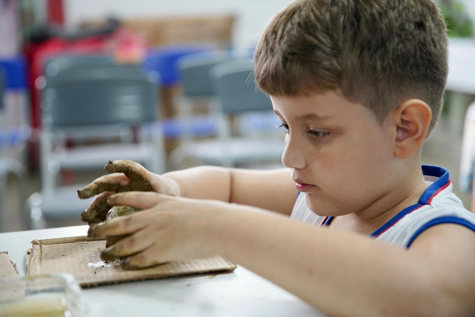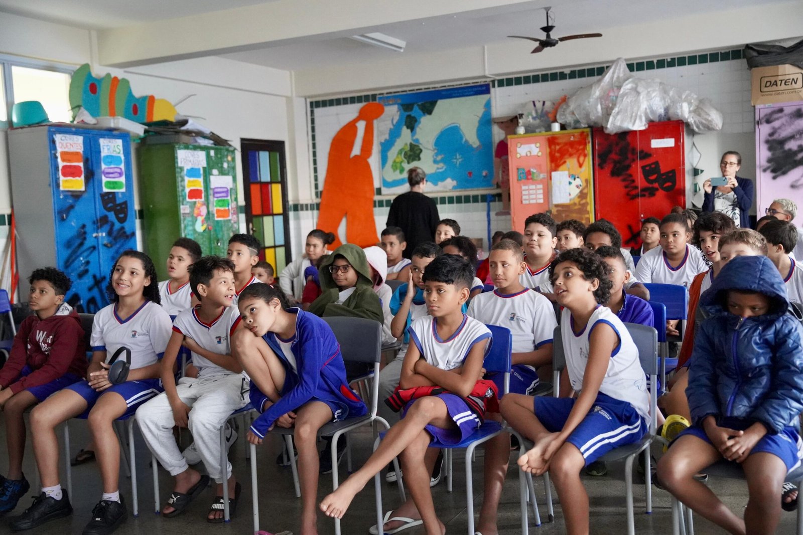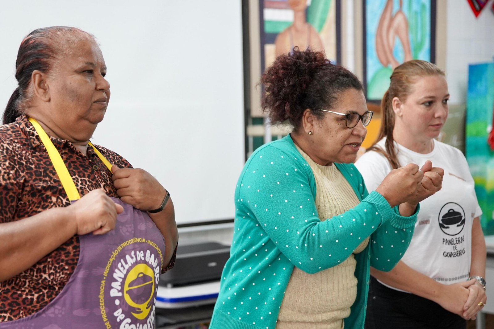 Como a EMEF Juscelino K. de Oliveira fica no bairro de Goiabeiras, muitas crianças já conheciam o galpão ou o ofício das paneleiras da região. Então foi, praticamente, uma oficina “avançada”, com dúvidas e comentários, digamos assim, mais aprofundados no tema. O que não diminuiu a empolgação, de forma alguma, com o contato direto com o barro.