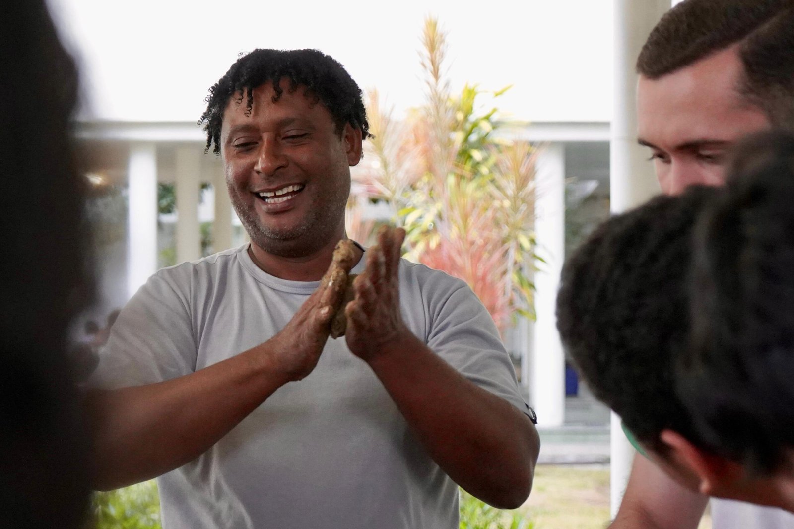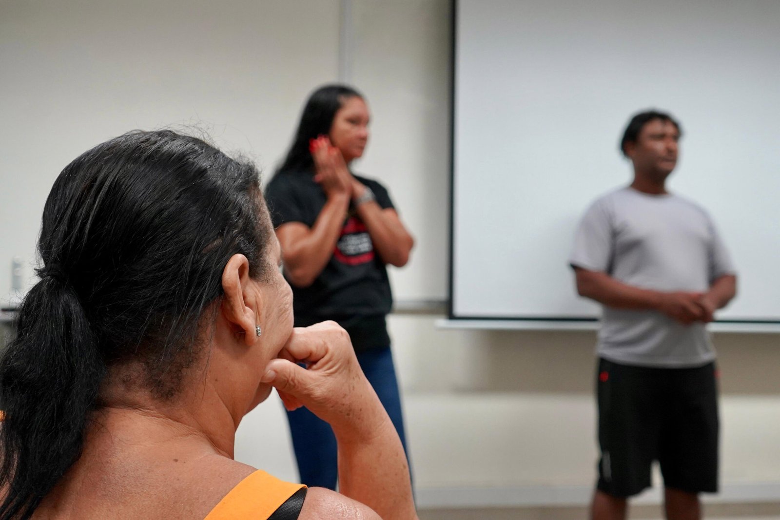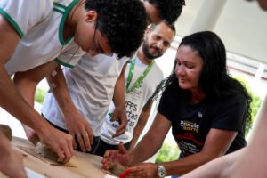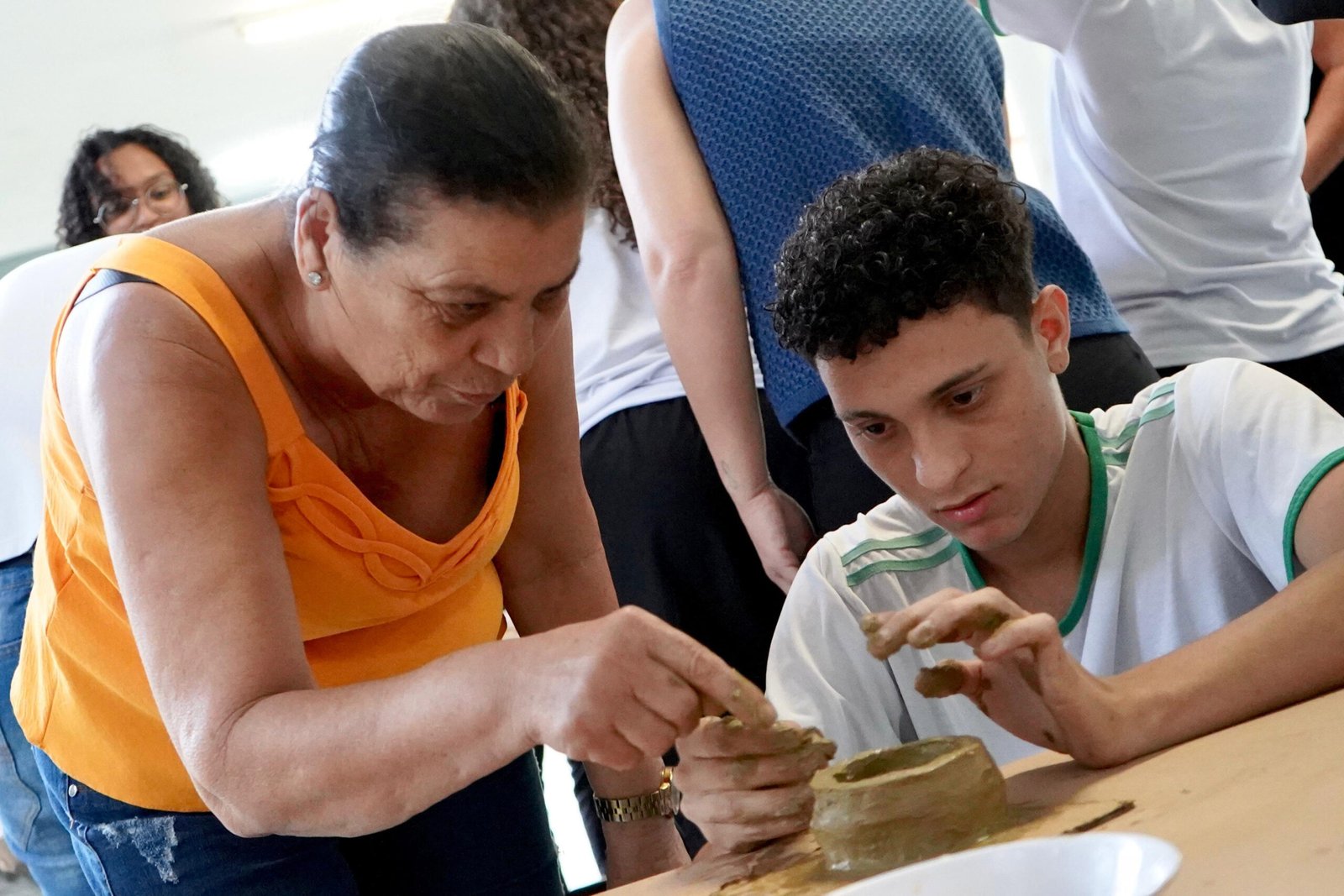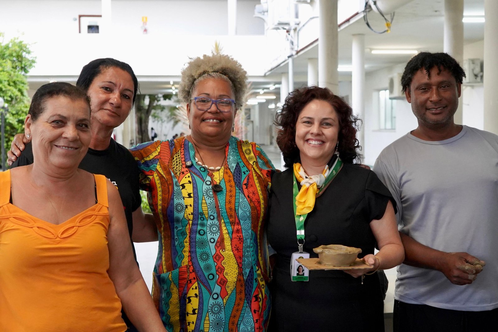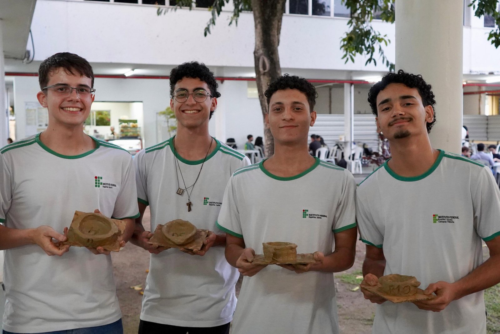 A turma da tarde do curso de Estradas, no IFES Vitória foi comandada pelas paneleiras Lauriete da Vitória e Jucilea Barboza e o artesão Fabio Fernandes Santos.