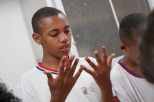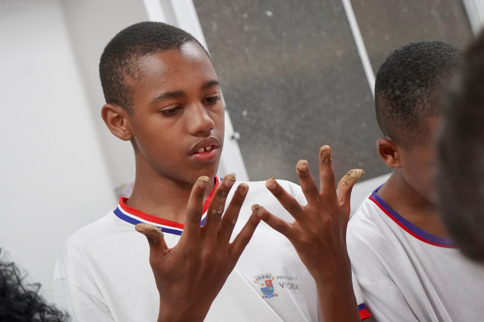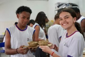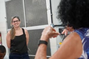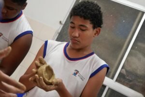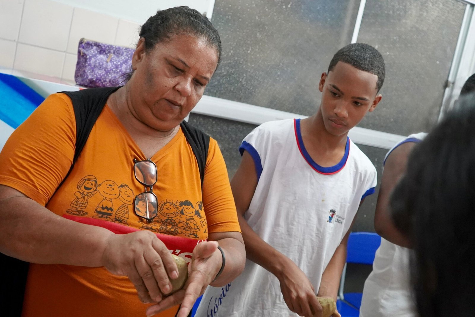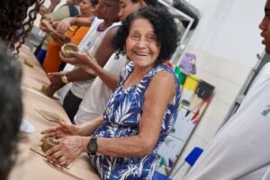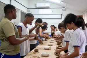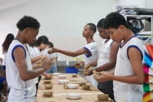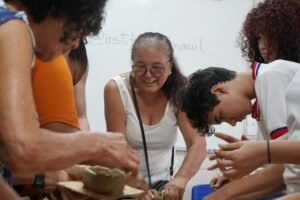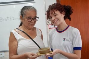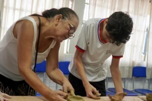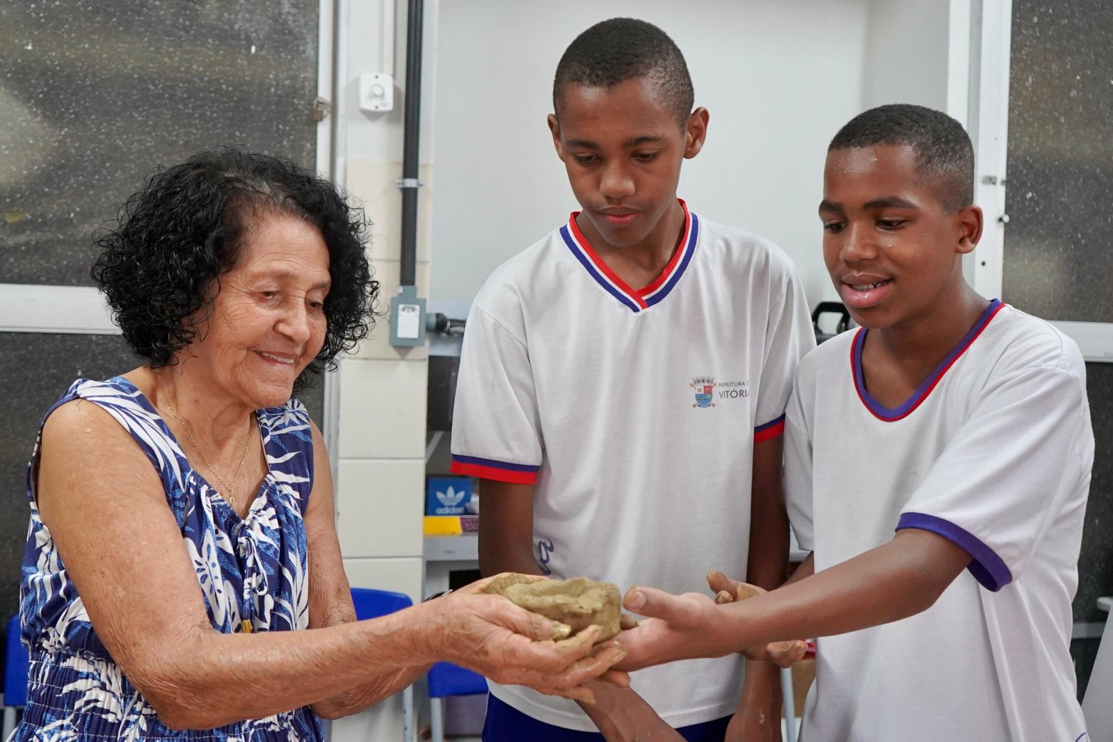 Hoje viemos para a EMEF Adão Benezath para duas oficinas. Pela manhã, as paneleiras Valda da Victoria Lucidato, Lucy Barbosa Salles e Valdinea da Victoria Lucidato, três experientes paneleiras, estiveram com a turma do 8o ano.