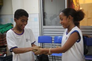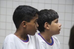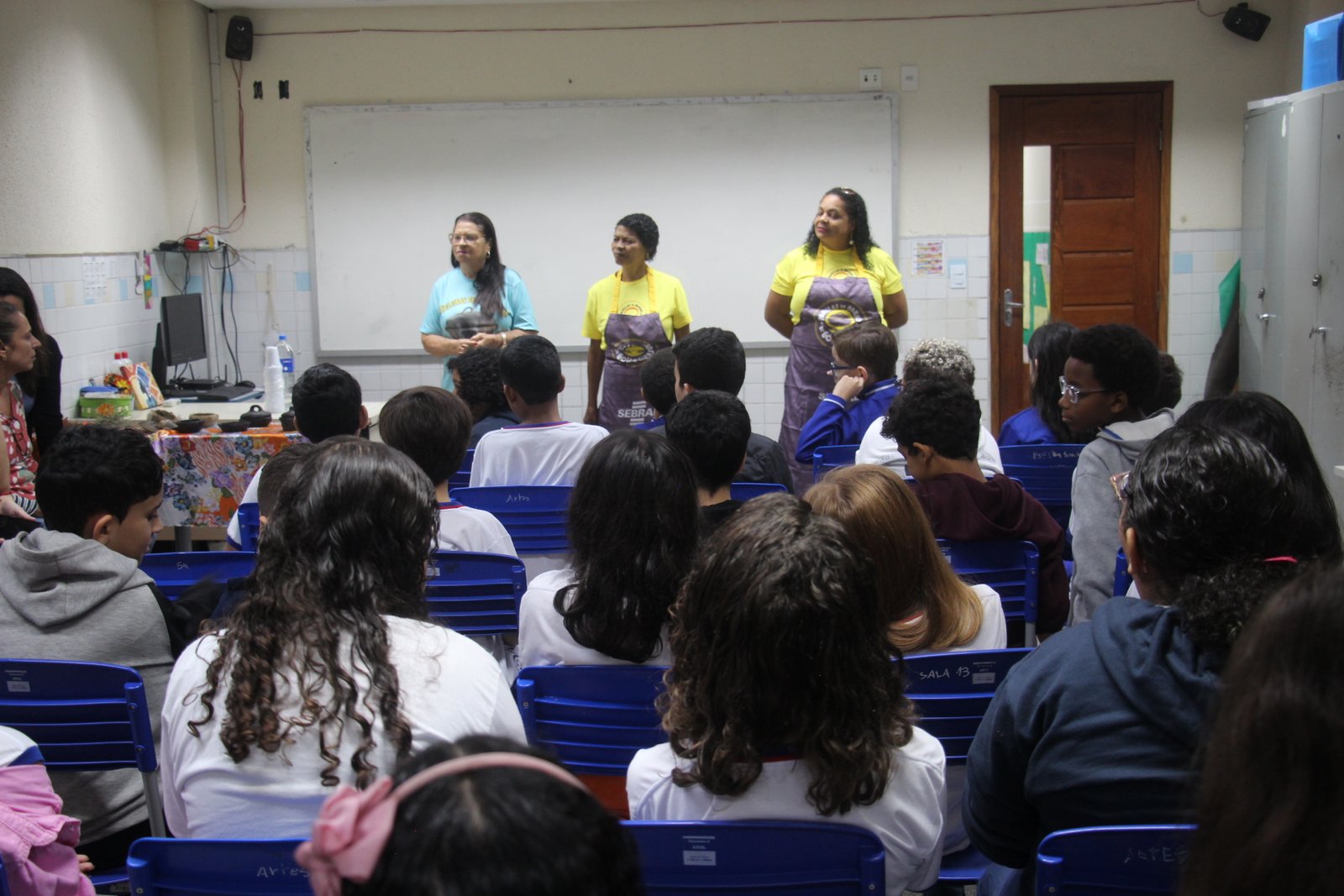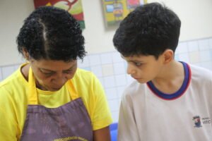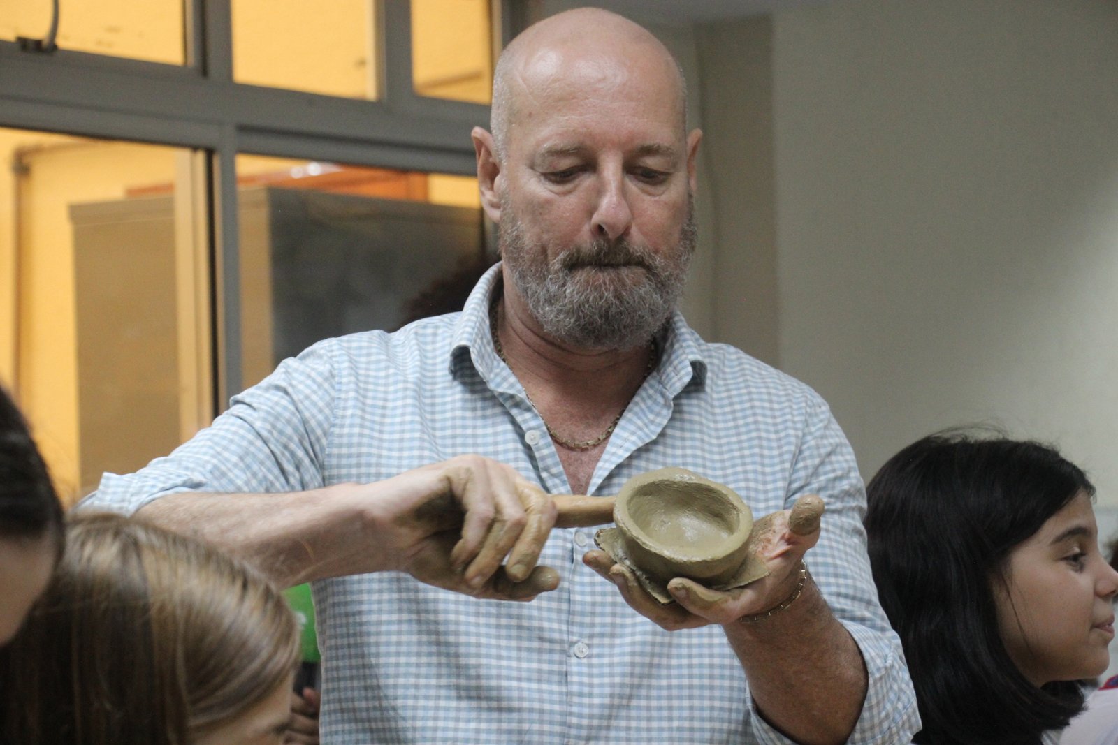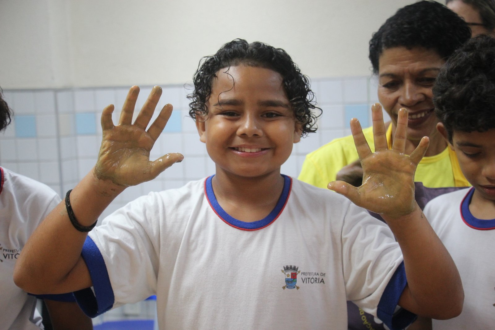 Foi assim, cantarolando a música das paneleiras, que o terceiro ano da EMEF Álvaro de Castro Mattos modelou suas panelinhas durante a terceira oficina do projeto Memória do Barro – Paneleiras, hoje (26/06) pela manhã. Quem comandou a turma foram as paneleiras Rosineia Alvarenga Siqueira, a Rosi (@rosineaalvarengade ), Lucineia de Jesus, a Neia (@paneladebarrodaneia ), e Berenicia Correa Nascimento (@berenicia8 ). O grupo teve a companhia de alguns professores da escola, que vieram dar uma espiadinha.