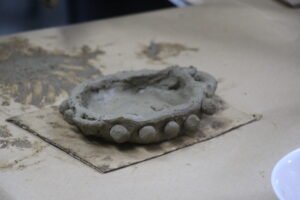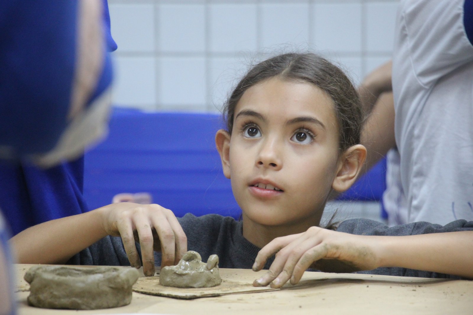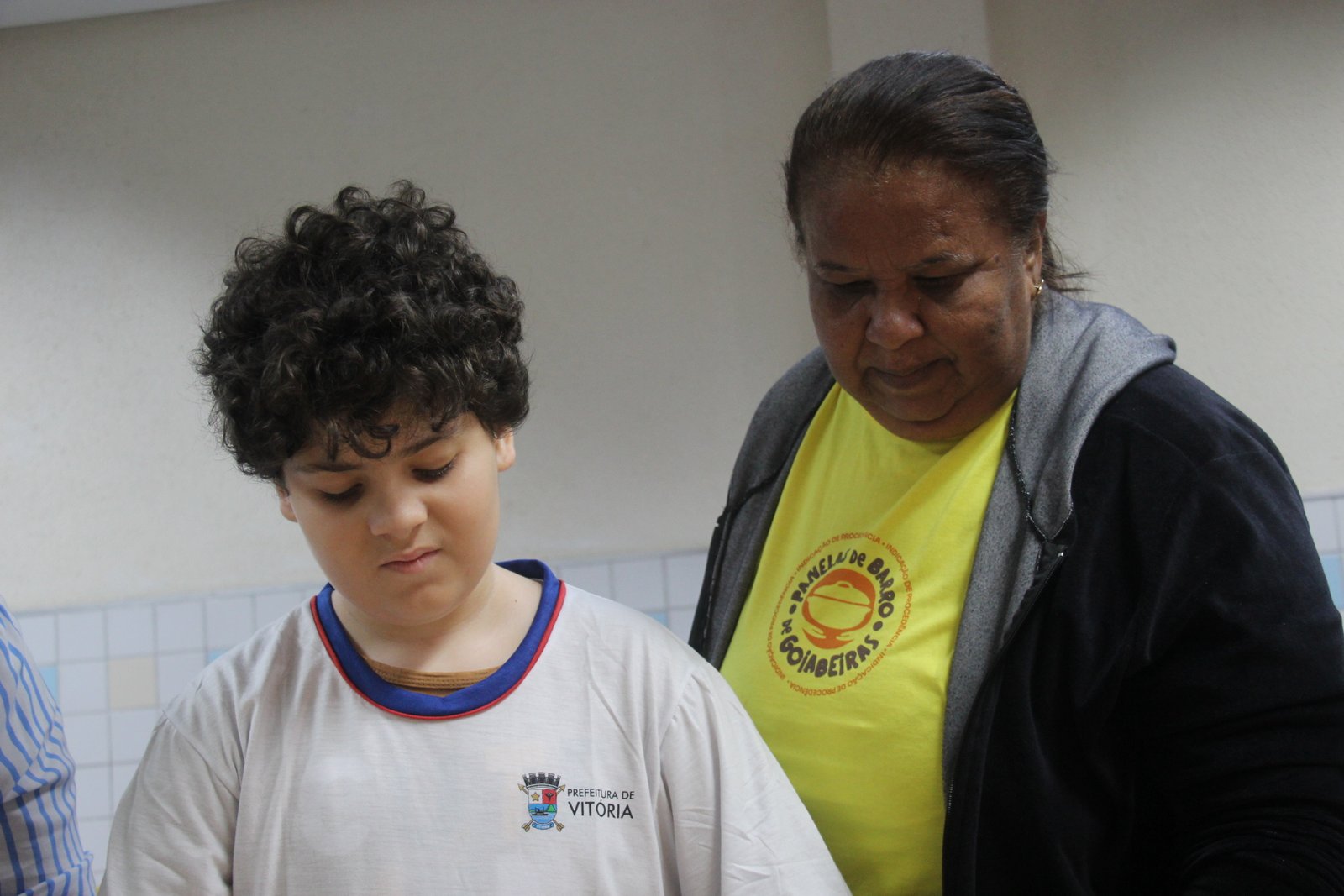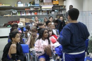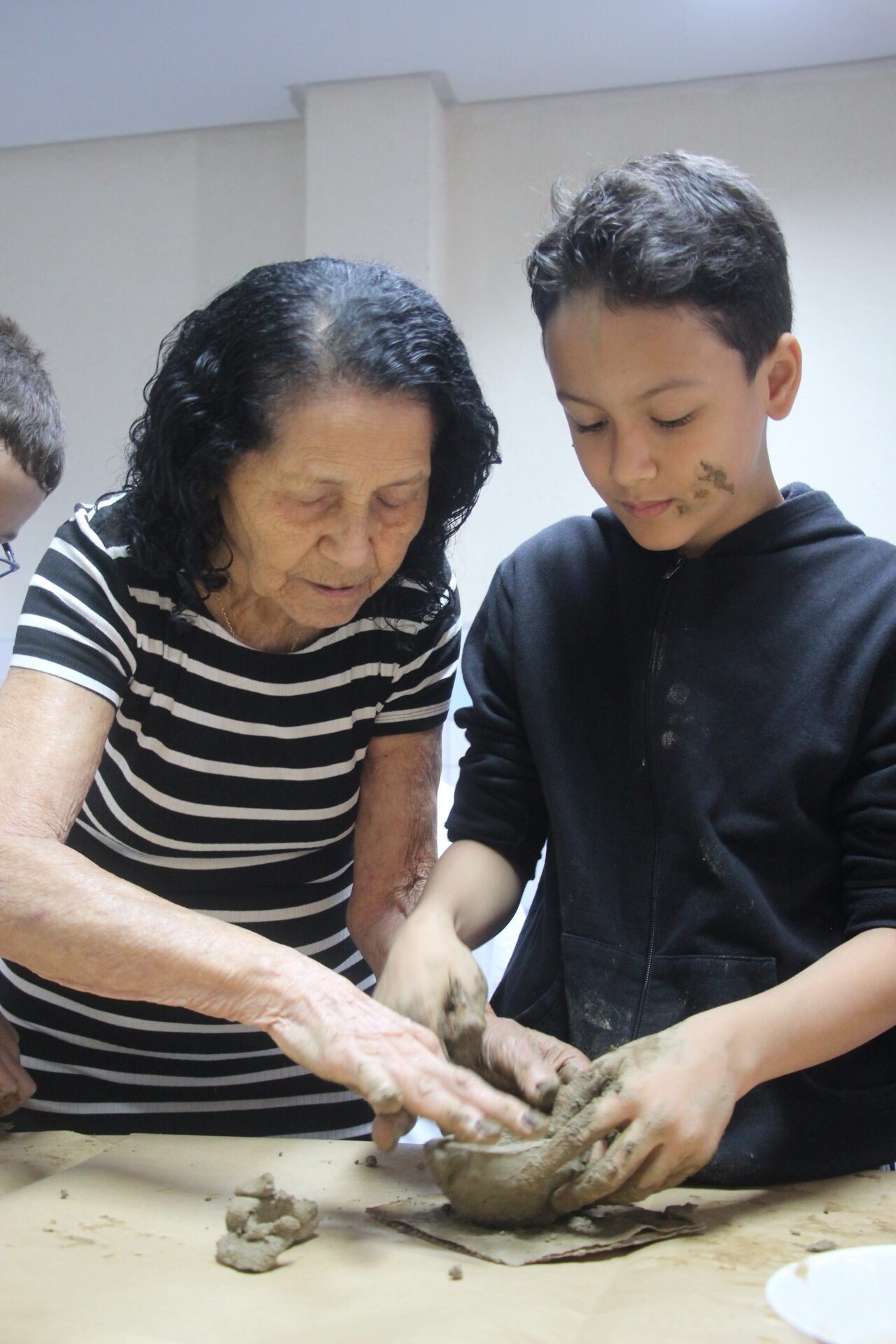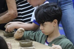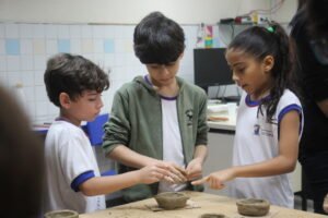O quinto encontro na escola encerra o ciclo de junho das oficinas do Memória do Barro – Paneleiras. Quem comandou a turma, hoje (27/06), foram as paneleiras Lucy Barbosa Salles e Valdinea Lucidato, que trabalham no galpão da Associação e a griô Sônia Ribeiro, paneleira de quintal e personagem da série Griôs de Goiabeiras, do Instituto Marlin Azul.