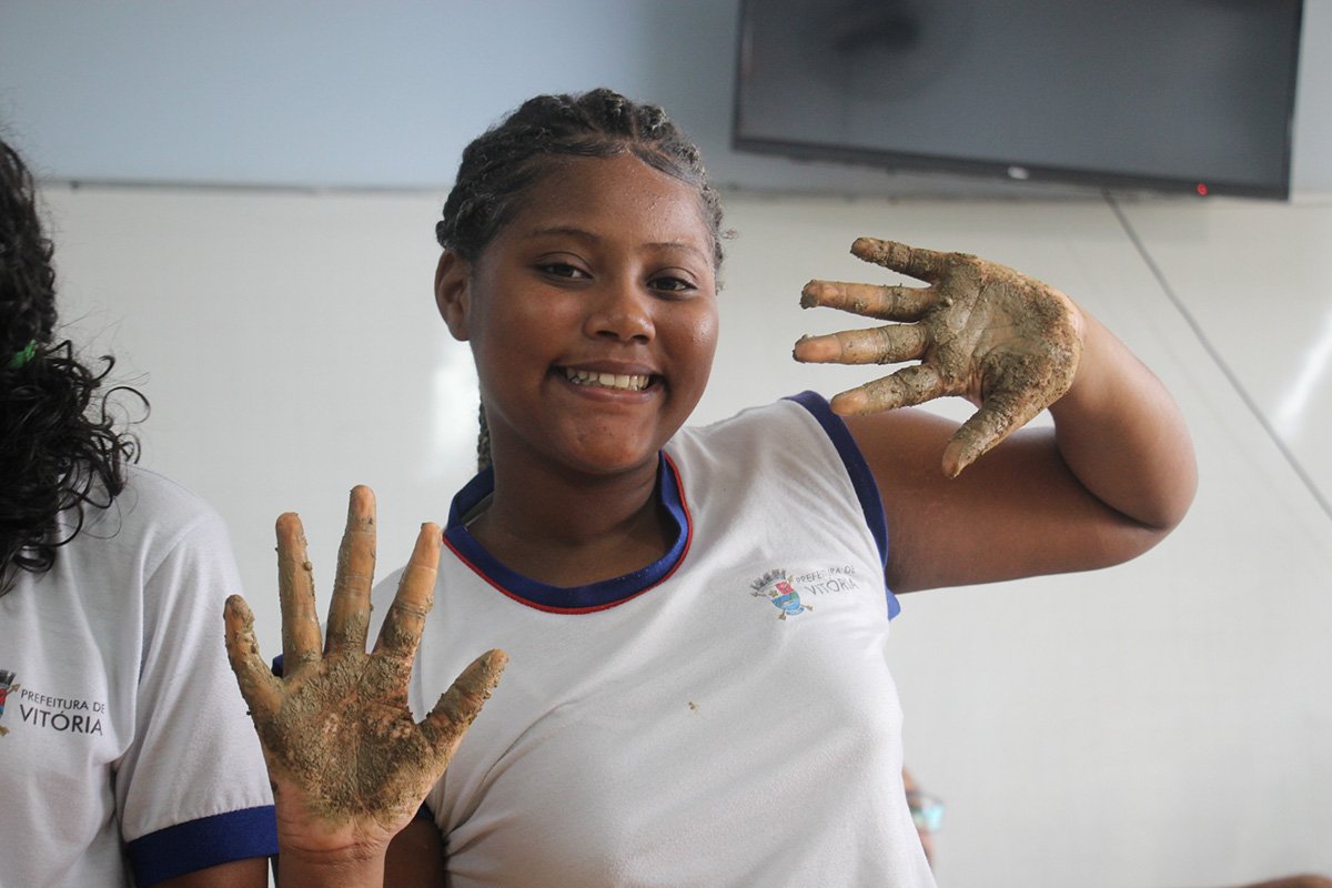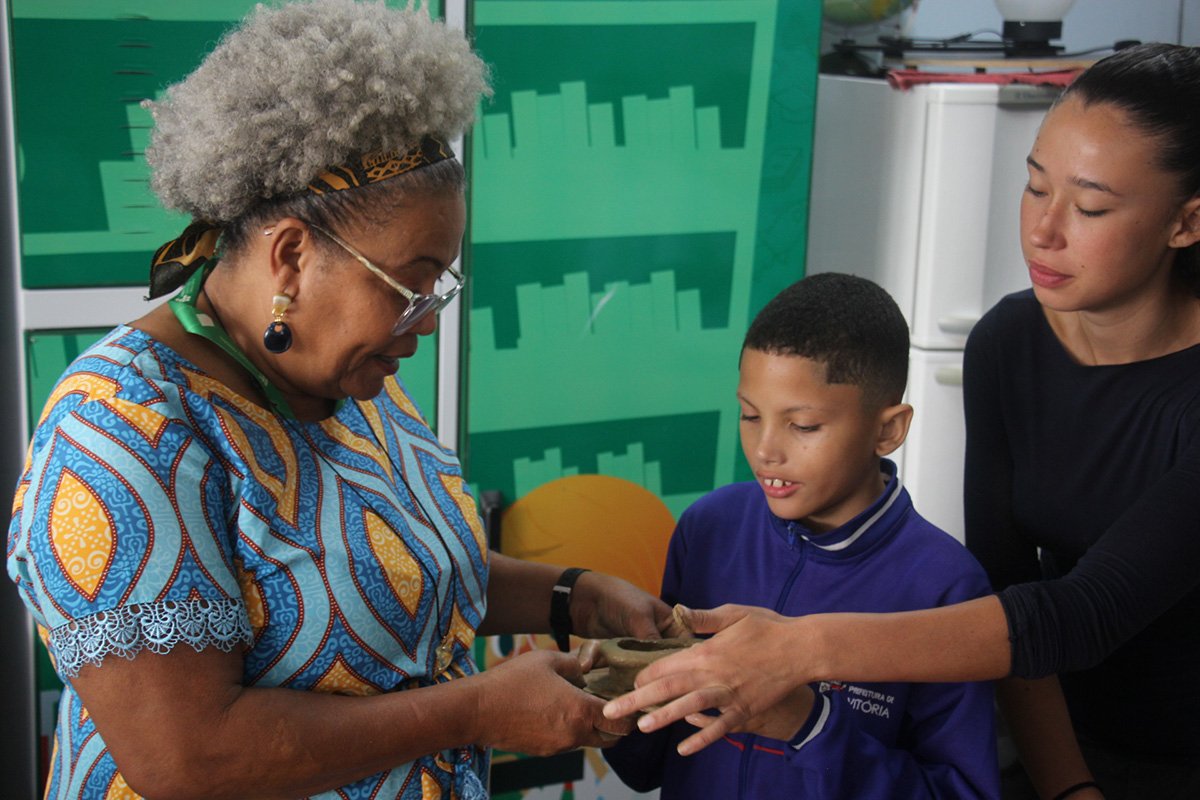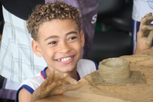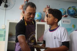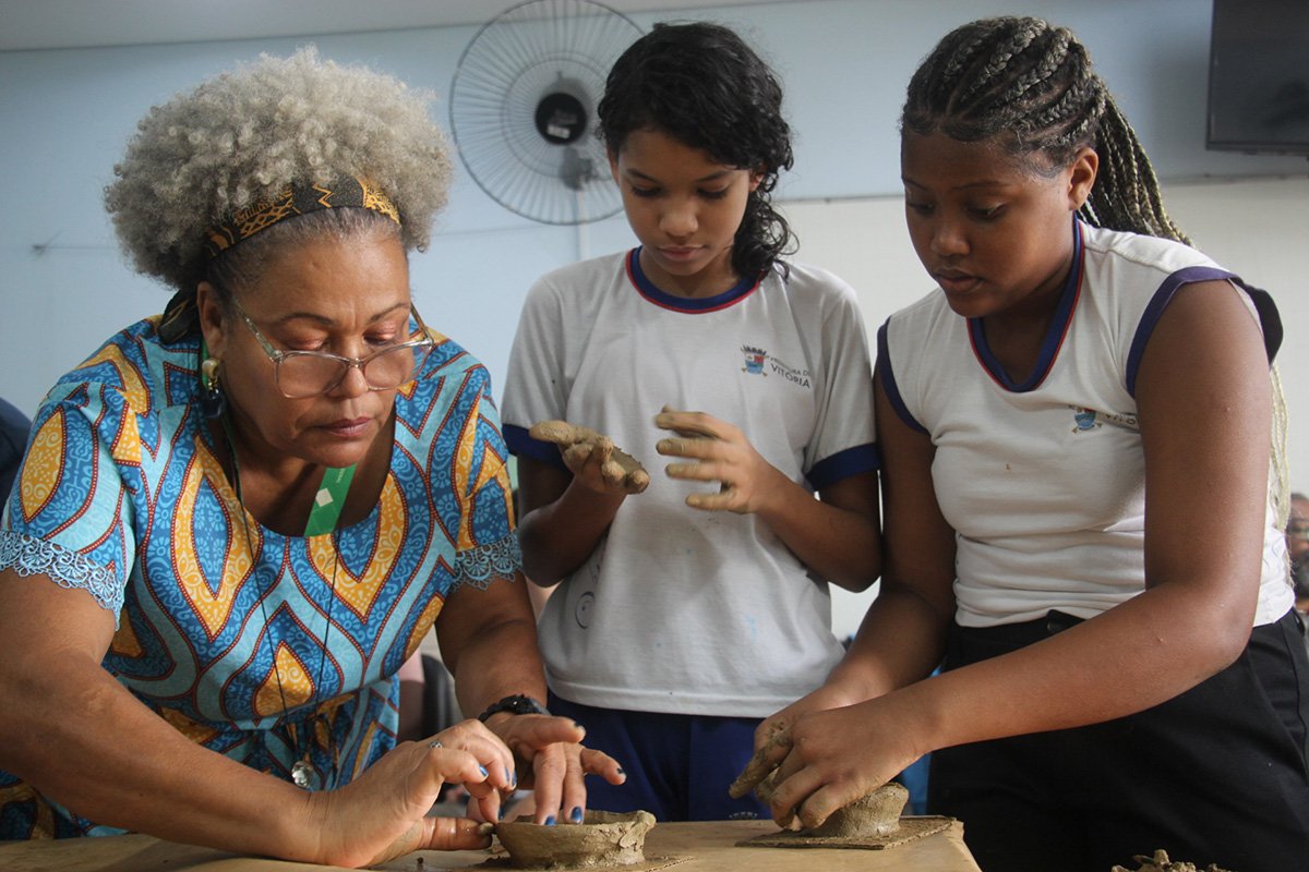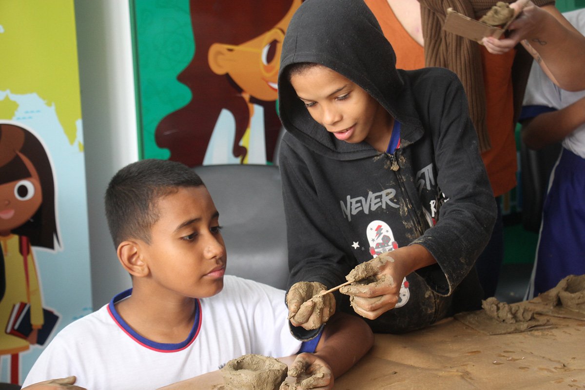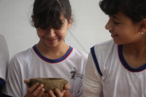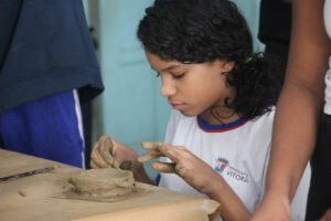 Foi o que ouvimos de um aluno do 5° ano fundamental da EMEF Ceciliano Abel de Almeida, no início do segundo ciclo das oficinas do projeto Memória do Barro – Paneleiras, na EMEF Ceciliano Abel de Almeida. O grupo formado por cerca de 30 pessoas, incluindo 3 professores foi comandado pelas paneleiras Eronildes Correa de Menezes, Jamilda Bento, Valdinea da Victoria Lucidato e o artesão José Carlos Correa Fernandes.