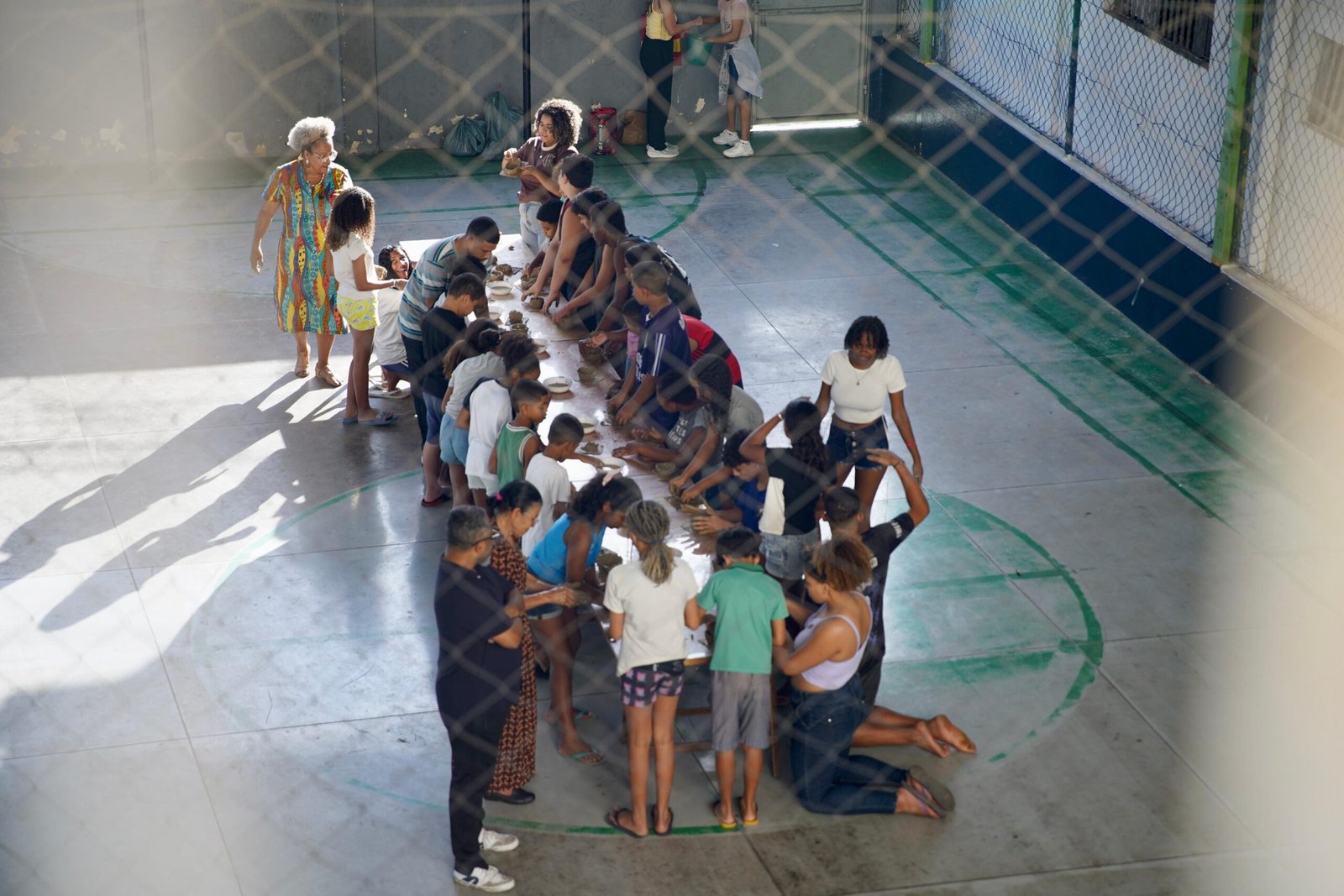 Casa de Atendimento e Orientação a Crianças e Adolescentes Cerca de 38 crianças entre 7 e 9 anos das professoras Kátia, Kassya e Railda participaram da 11a oficina do projeto, que aconteceu hoje, na Caoca, em Maria Ortiz, Vitória/ES. A turma agitada modelou panelinhas depois de assistir ao filme sobre as paneleiras e ouvir o